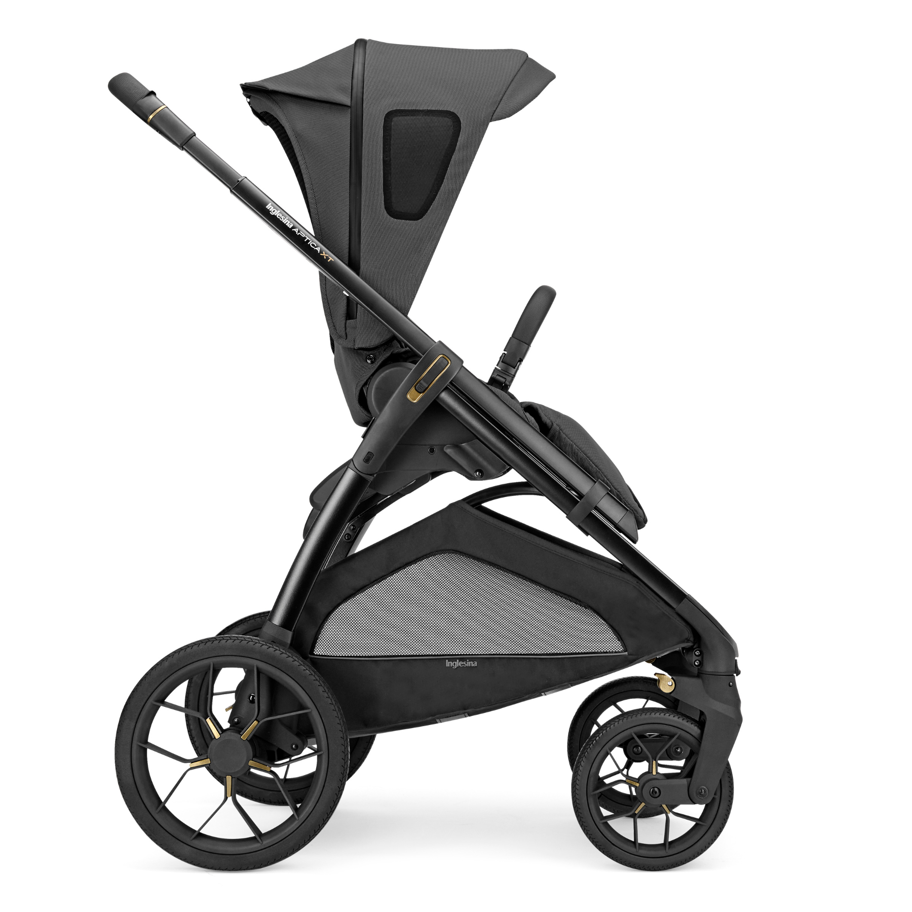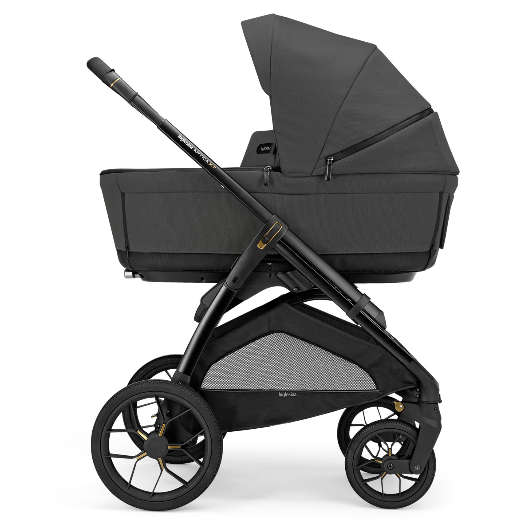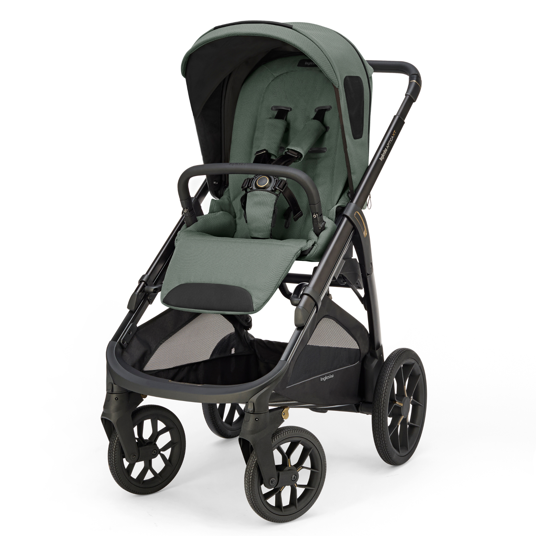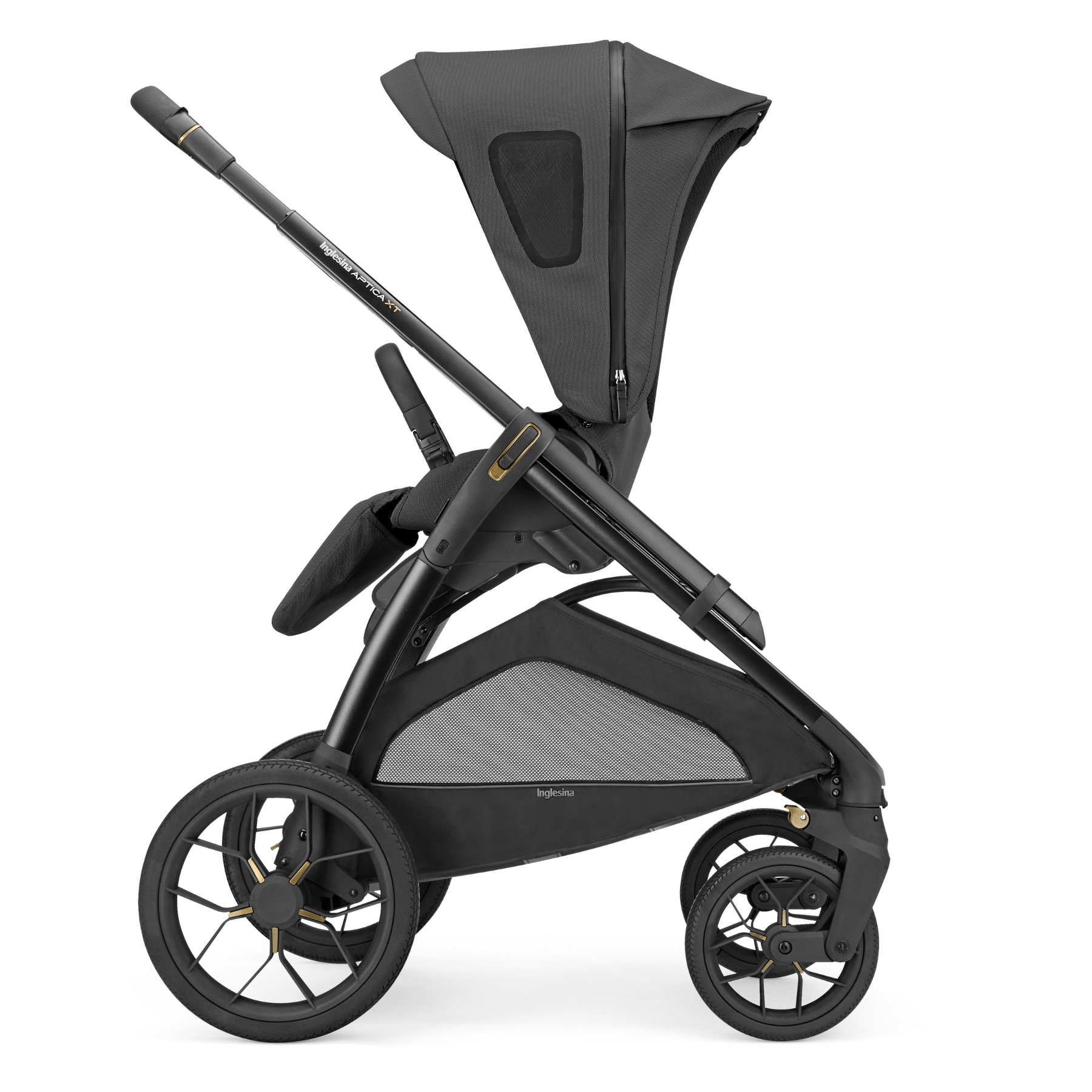 Thanks to the exclusive system patented by Inglesina, the Aptica XT stroller opens and folds up with one hand with the seat mounted, in both directions. Once folded up, the stroller stands on its own, preventing the fabric and the handle from touching the ground, keeping the stroller seat and your baby safe and sanitary.