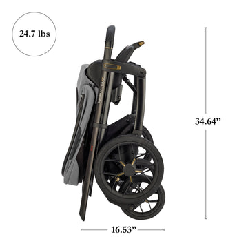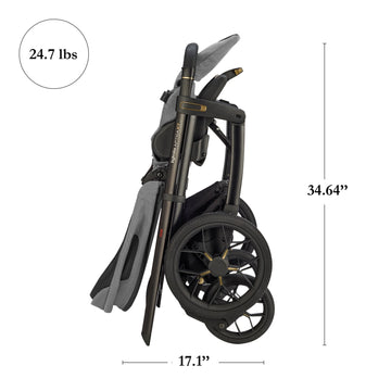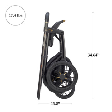 - Stroller dimensions when closed: 21.65" L x 35.4" W x 16.9-17.5"D