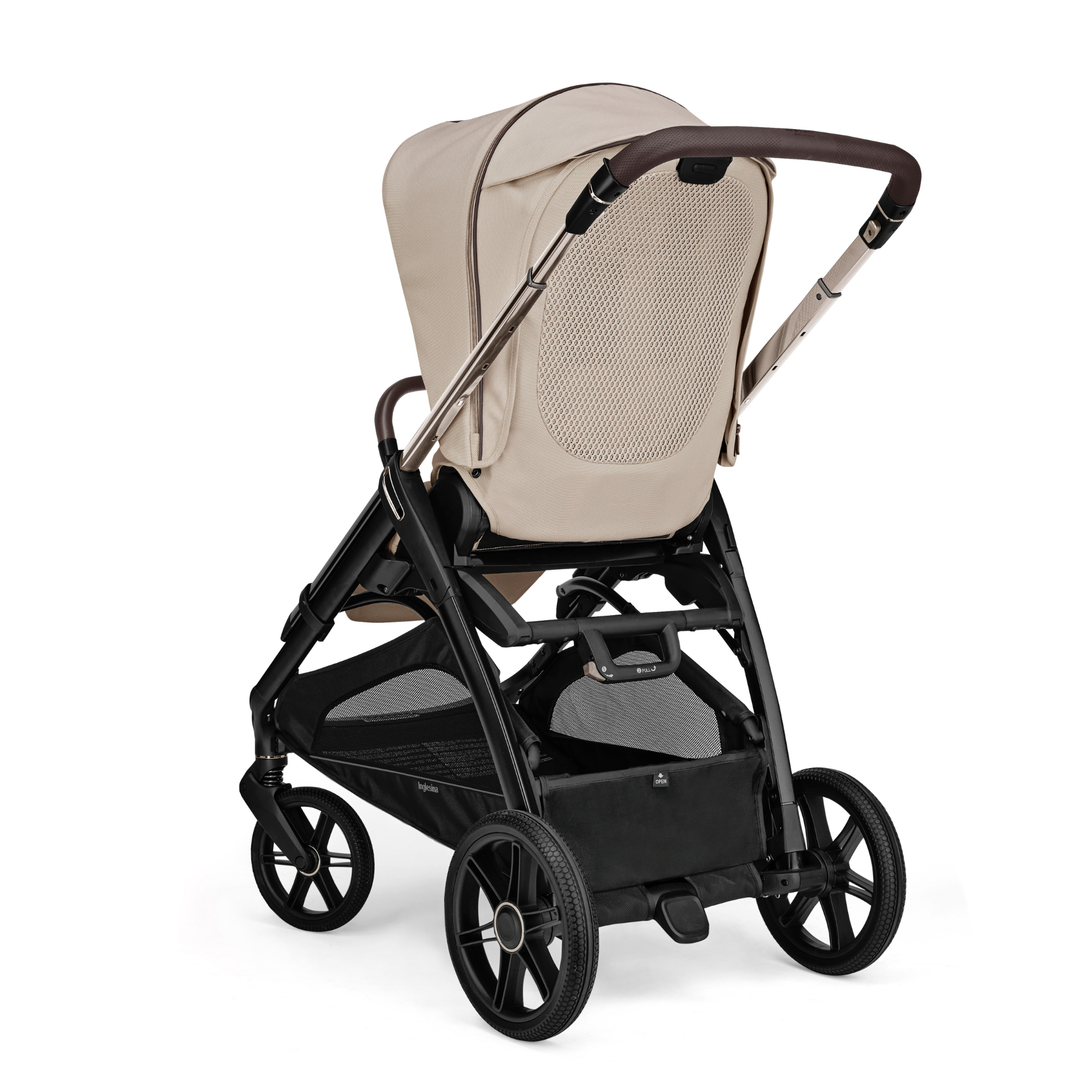Thanks to the exclusive system patented by Inglesina, the Aptica stroller opens and folds up with one hand with the seat mounted, in both directions. Once folded up, the stroller stands on its own, preventing the fabric and the handle from touching the ground, keeping the stroller seat and your baby safe from germs.